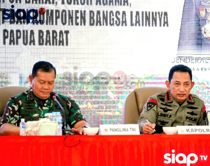Papua Barat ( Siaptv.com ) – Kapolri Jenderal Listyo Sigit Prabowo, Panglima TNI Laksamana Yudo Margono beserta Kepala Staf TNI, AD, AL, AU menggelar silaturahmi bersama dengan Forkopimda dan lintas elemen masyarakat di Papua Barat, Selasa, 10 Januari 2023.