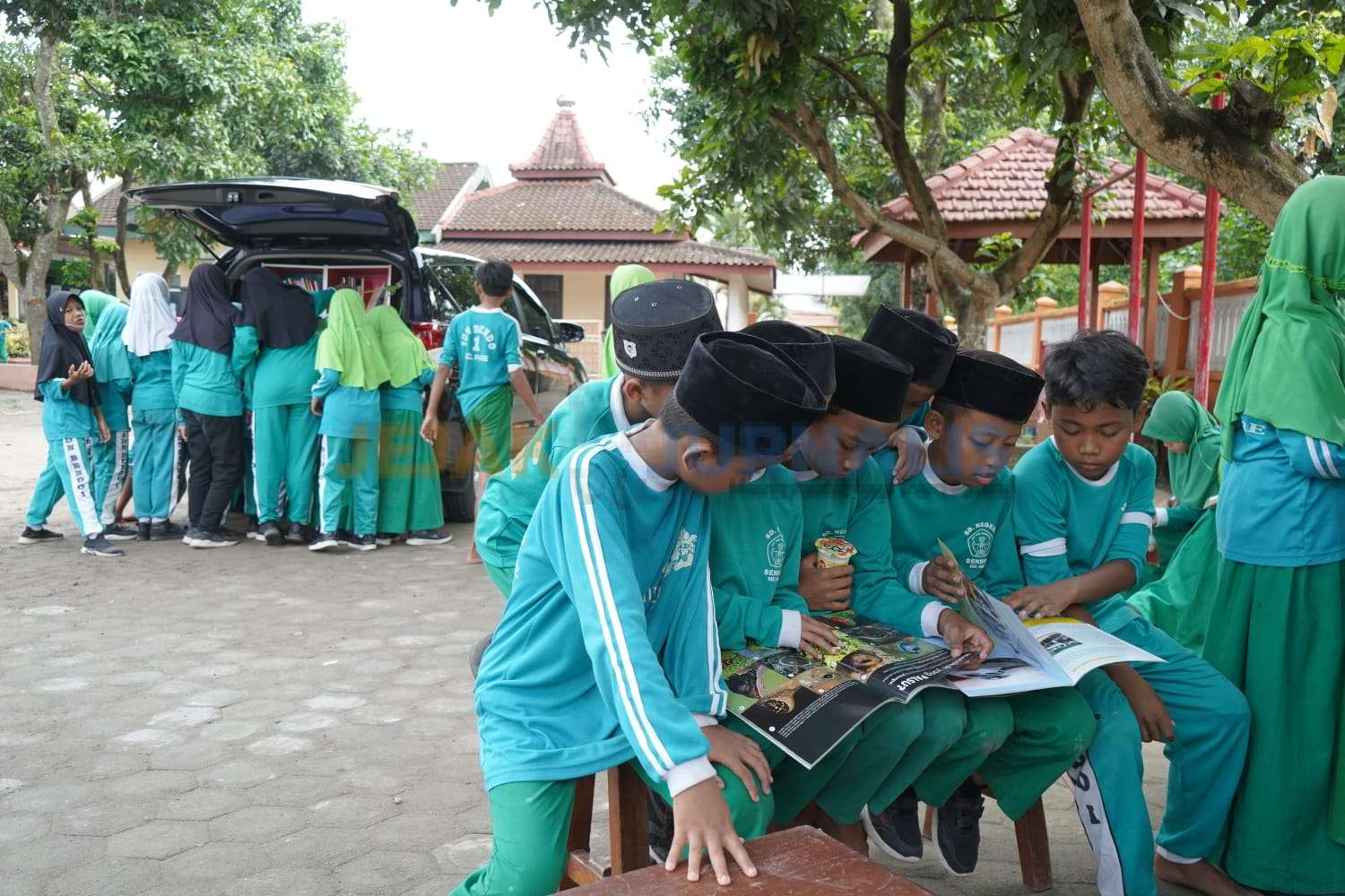 Secara kebetulan, kedatangan pejabat Dinas Pendidikan itu bertepatan dengan jam istirahat. Begitu mobil dibuka dan para siswa diinformasikan bisa membaca buku bacaan yang ada, sontak membuat para siswa antusias.