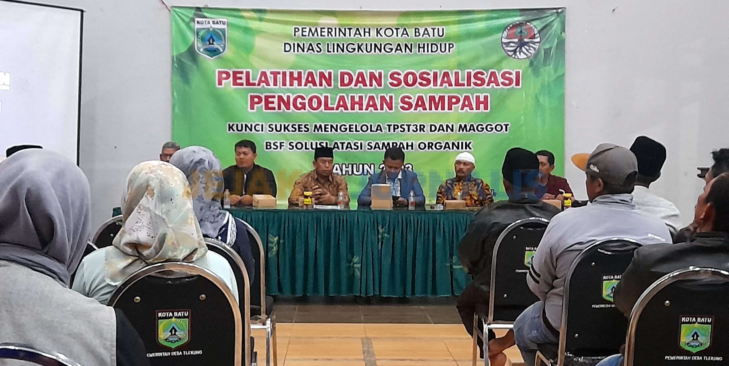 Kota Batu ( Jejakjurnalis.com ) ; Pemkot Batu melalui Dinas Lingkungan Hidup gelar pelatihan dan sosialisasi pengelolaan sampah dengan tema ” Kunci Sukses Mengelola TPST3R dan Maggot BSF Solusi Atasi Sampah Organik Tahun 2023 di gedung Srikandi desa Tlekung kecamatan Junrejo kota Batu. Rabu (31/5/2023 ).