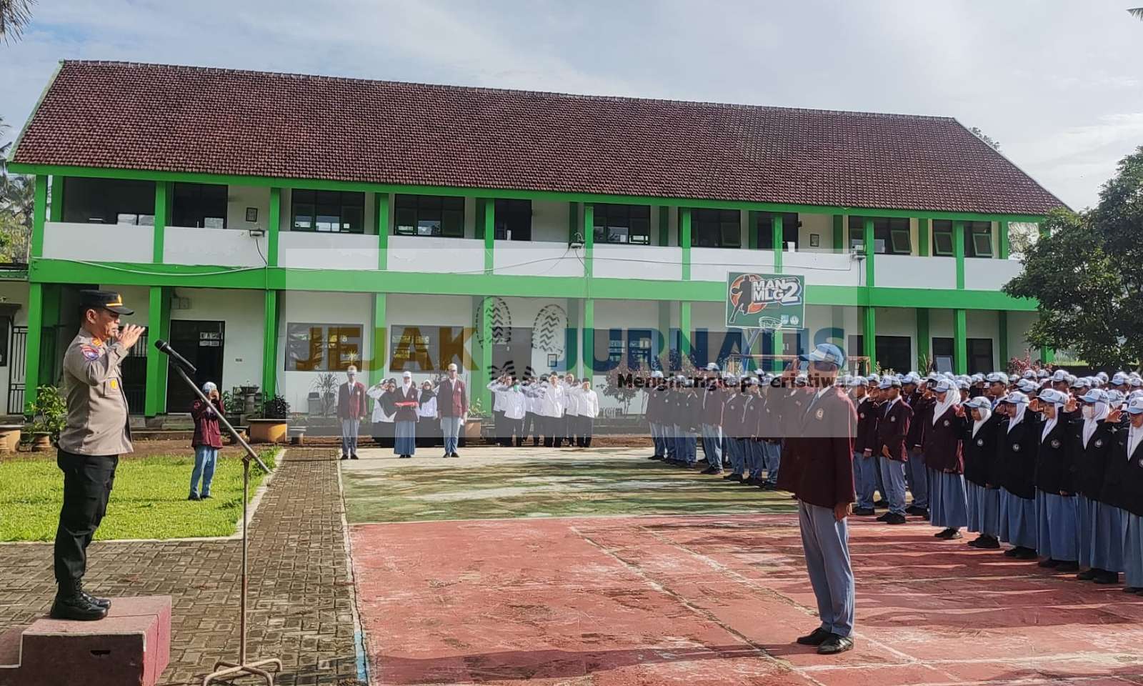 Ratusan siswa menjadi peserta langsung dalam sosialisasi yang dilakukan oleh Kasat Binmas Polres Malang, AKP Sugik Hernawan, saat menjadi inspektur upacara bendera di Dalam pidatonya, MAN 2 Malang, Senin (29/1/2024). Kasat Binmas mengungkapkan bahwa kegiatan ini merupakan bagian integral dari upaya pihaknya untuk mengajak siswa menjadi pengendara yang bijak dan lebih memikirkan keselamatan berlalu-lintas.