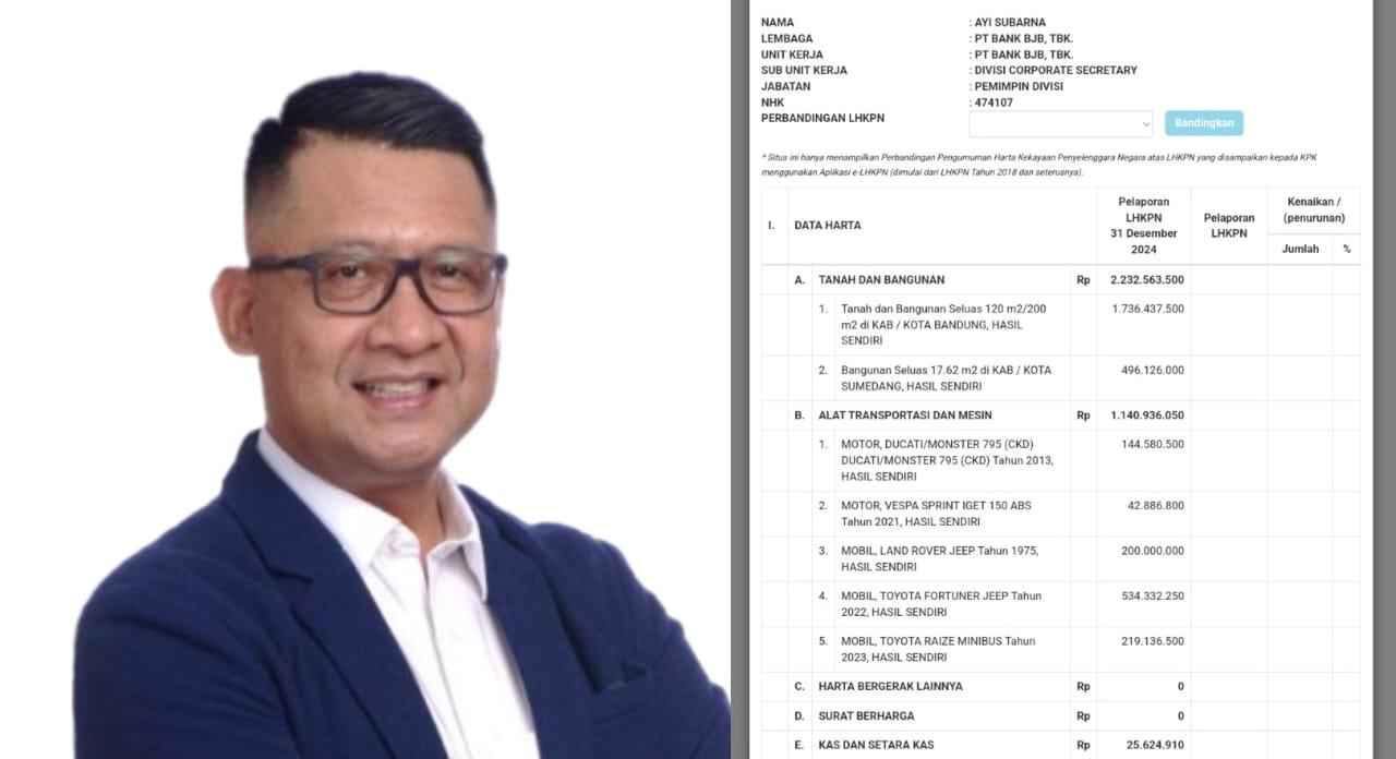 JAKARTA, – Krik terhadap transparansi harta pejabat kembali mencuat setelah Direktur Eksekutif Budgeting & Analysis (CBA), Uchok Sky Khadafi, meminta Gubernur Jawa Barat meninjau ulang LHKPN milik Pelaksana Tugas Direktur Utama Bank BJB, Ayi Subarna.   Sorotan terutama mengarah pada nominal kas yang tercatat dalam laporan tahunannya, yang dinilai terlalu kecil untuk pejabat setingkat pimpinan BUMD besar.  Dalam pernyataannya, Uchok menilai data tersebut tidak wajar dan perlu diverifikasi ulang oleh pemerintah provinsi.   “Sekelas Plt Dirut BJB masa hanya punya kas atau tabungan Rp 25 juta? Jangan sampai Kang Dedi dibohongi, ini harus diusut,” ujarnya pada Kamis, 20 November 2025.  Nilai Kas Jadi Pertanyaan, Sementara Total Kekayaan Tembus Rp 2,16 Miliar  Laporan harta kekayaan Ayi Subarna yang tercatat di situs LHKPN KPK menunjukkan total aset sebesar Rp 2,16 miliar untuk periode pelaporan tahun 2024.   Hampir seluruhnya berasal dari kepemilikan properti dan kendaraan dengan nilai sebagai berikut:  Tanah dan bangunan: Rp 2.232.563.500 Alat transportasi dan mesin: Rp 1.140.936.050 Kas dan setara kas: Rp 25.624.910 Hutang: Rp 1.238.334.687  Angka yang menjadi sorotan adalah nominal kas Rp 25 juta, komponen pelaporan yang biasanya menggambarkan tingkat likuiditas pribadi.   Dalam konteks posisi strategis Ayi di Bank BJB, nilai itu dinilai janggal oleh CBA dan memunculkan pertanyaan mengenai validitas atau kemungkinan kelalaian pelaporan.  Desakan kepada Gubernur Jabar: Perlu Ketelitian dalam Menunjuk Pejabat BUMD  Uchok tidak hanya mempertanyakan angka kas tersebut, tetapi juga mendorong pemerintah daerah memperketat proses penunjukan pejabat strategis di BUMD.   “Ada dugaan ketidakjujuran kalau melihat LHKPN-nya. Tentu pemerintah provinsi harus lebih selektif,” tegasnya.  Sampai berita ini diterbitkan, belum ada tanggapan dari Ayi Subarna mengenai kritik tersebut. Pihak Bank BJB juga belum memberikan pernyataan resmi.  Jejak Kekayaan yang Bertumbuh Seiring Karier  Jika ditelusuri ke belakang, laporan LHKPN Ayi memperlihatkan peningkatan kekayaan yang stabil sejak lebih dari satu dekade lalu.   Kenaikan itu berjalan beriringan dengan pergeseran posisinya di berbagai divisi dan kantor cabang Bank BJB.  Perkembangan kekayaannya sebagai berikut:  2012 – Rp 71.826.708 2015 – Rp 221.826.708 2017 – Rp 595.215.856 2018 – Rp 755.577.006 2019 – Rp 1.019.727.706 2020 – Rp 651.011.877 2021 – Rp 1.586.038.762 2022 – Rp 1.745.102.998 2023 – Rp 2.053.174.496 2024 – Rp 2.160.789.773  Perubahan signifikan tampak terutama dalam periode ketika Ayi menjabat sebagai pimpinan cabang dan kemudian pemimpin divisi.  Karier Panjang Ayi Subarna di Bank BJB  Ayi Subarna bukan figur baru di lingkungan Bank BJB. Ia memiliki rekam jejak panjang mulai dari sektor operasional, manajemen jaringan, hingga teknologi informasi. Beberapa posisi yang pernah ia emban antara lain:  Pemimpin Cabang Jatinangor Pemimpin Cabang Cimahi Pemimpin Cabang Soreang Pemimpin Divisi  Dari posisi inilah Ayi kemudian dipercaya menjadi Plt Direktur Utama.  Publik Tunggu Penjelasan Langsung  Di tengah meningkatnya sorotan terhadap laporan keuangannya, publik kini menunggu klarifikasi dari Ayi Subarna.   Tanpa penjelasan resmi, kritik mengenai nominal kas yang sangat kecil itu berpotensi memunculkan berbagai spekulasi.  Hingga saat ini, belum ada keterangan tambahan dari pihak Bank BJB maupun pemerintah provinsi mengenai tindak lanjut atas permintaan CBA.   Sementara itu, transparansi pejabat publik terus menjadi isu penting yang menjadi perhatian masyarakat.