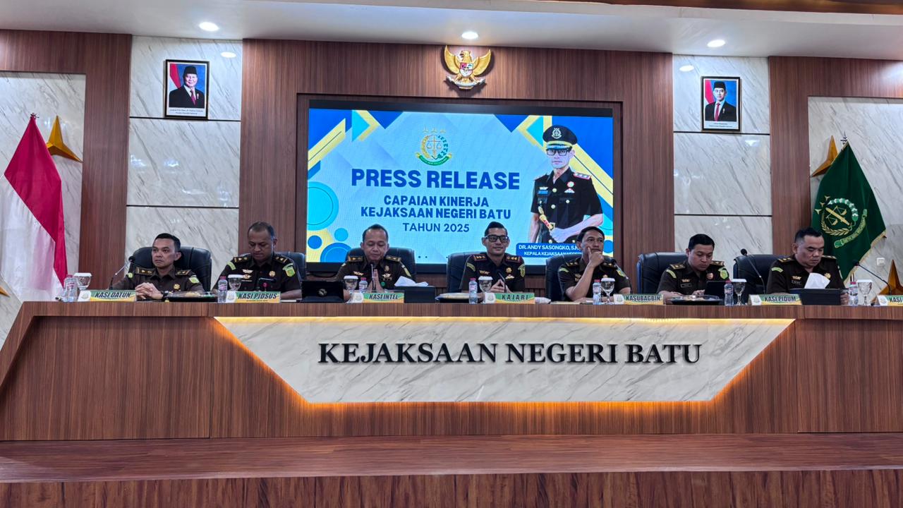 Kota Batu ; Kejaksaan Negeri ( Kejari ) Batu gelar press release capaian kinerja Kejaksaan Negeri ( Kejari ) Batu tahun 2025 di aula Adhyaksa Kantor Kejaksaan Negeri Batu jalan Sultan Agung Kecamatan Batu Kota Batu, pada Senin ( 29/12/2025 ) mulai 12.00 WIB hingga selesai.